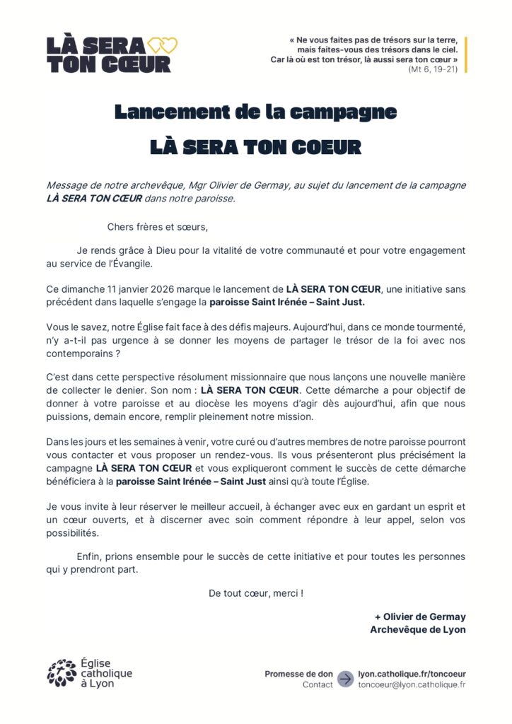 Lettre de Mgr de Germay : Lancement de la campagne – LÀ SERA TON COEUR